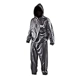 Everlast sauna suit enhances training benefits by promoting rapid water weight loss. Hood and elasticized wrist, waist and ankle closures keep body heat inside. Vinyl fabricated for lasting durability.